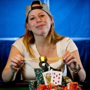 On Tuesday, the 2015 World Series of Poker National Championship aired on ESPN for two hours. The main story of the first hour was the elimination of Daniel Negreanu in sixth place, so we’ll move on to the second hour, which began with Loni Harwood (pictured) holding the chip lead five-handed.