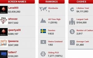 Three of the last four players to hit #1 on PocketFives all call Sweden home. The poker powerhouse has churned out top-tier talent after top-tier talent. The latest Swede to hit #1 is ‘lena900‘, who moved into the top spot for the first time ever on Wednesday.