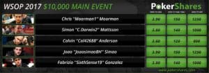 The World Series of Poker Main Event final table starts Thursday evening and PokerShares.com has all the odds leading up to poker’s richest three days.
